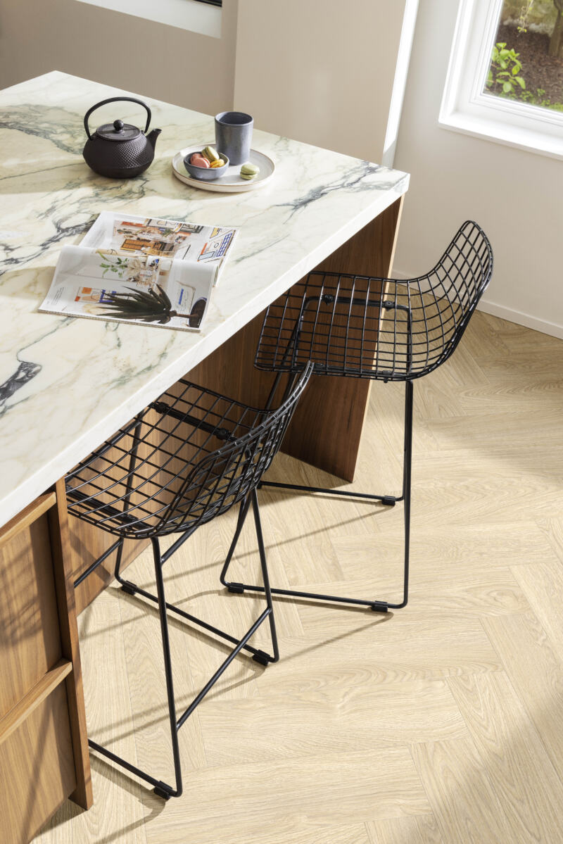 De nieuwste ontwikkeling in PVC vloeren, De Moduleo LayRed PVC visgraatvloer met geïntegreerde ondervloer. Sterker dan ooit en toch aangenaam zacht en stil.
